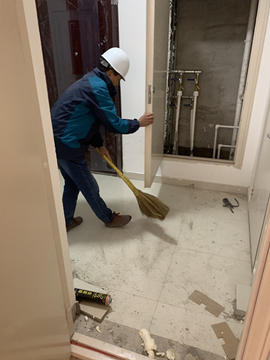 共有2名黨員,20多名團員參加此次義務勞動。在黨員同志的模范帶頭下,大家深入三期工程現(xiàn)場,圍繞工程竣工收尾階段對高層25#、26#、27#樓進行衛(wèi)生清理,主要清掃每層樓的公共區(qū)域及連廊部分。雖然天氣寒冷,但是大家熱情高漲、干勁十足。大家分工合作,由上至下,不放過每一個角落的垃圾。在3個多小時的共同努力下,大家共完成了102層樓的衛(wèi)生清理工作。