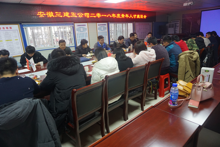 為進一步了解青年職工的思想動態和工作狀態,加強人才培養,12月21日,五公司深入一線,在州來皖投·天下明珠項目部召開2018年度青年人才交流座談會。分公司領導班子、各項目經理、近三年進場的青年職工、優秀青年員工代表共40余人參加了座談會。