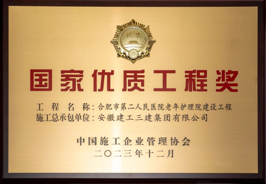 12月24日,2022-2023年度第二批國家優質工程獎獲獎名單揭曉。安徽建工三建集團承建的合肥市第二人民醫院老年護理院建設工程榮獲“國家優質工程獎”。至此,公司已累計獲得4項“國家優質工程獎”。