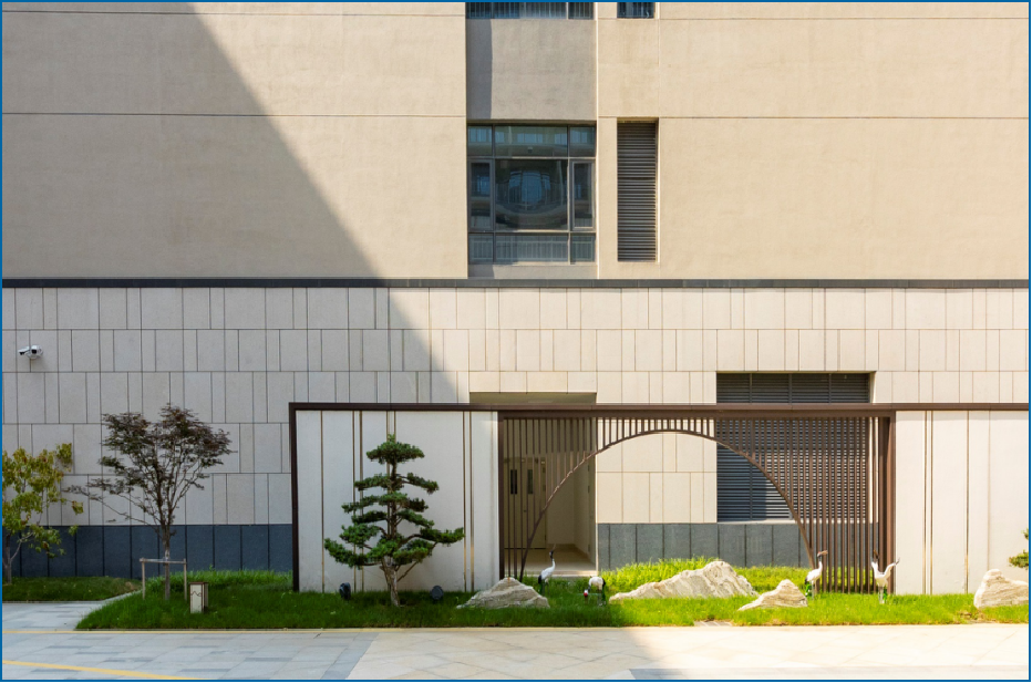 項目踐行綠色建造理念,著力去“醫院化”,為老年人提供安全、生態、人文的康復養生環境。采用冰蓄冷技術實現用電移峰填谷,雨水回收系統應用達到綠色低碳,此外還采用光熱太陽能、光伏發電、能耗監測系統等一系列節能環保技術,實現節能降耗,綠建等級達到二星標準。