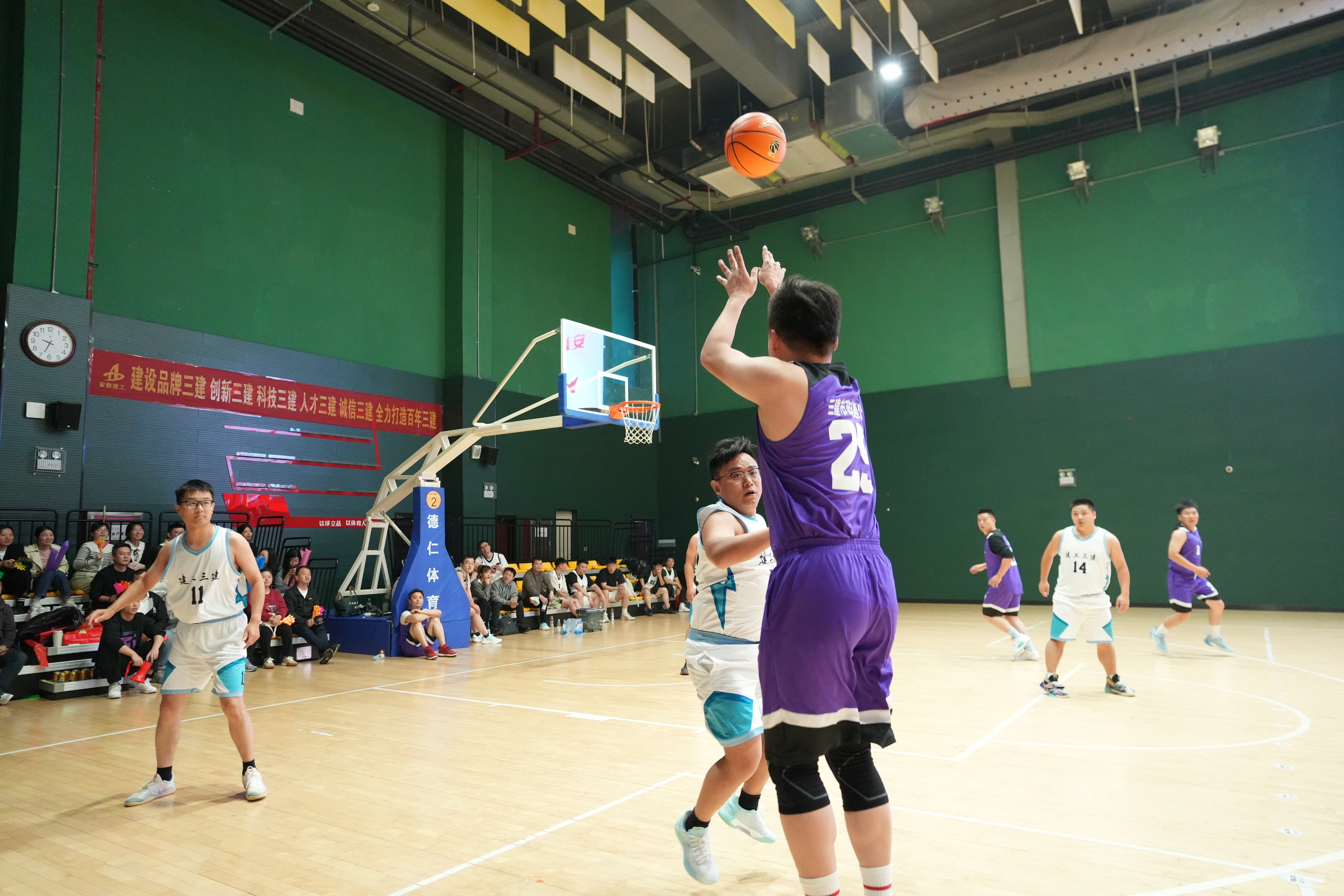 11月13日至15日,安徽建工三建“青春‘籃’不住,奮進正當時”第十二屆“三建杯”職工籃球賽在合肥市工人文化宮成功舉辦。自開賽以來,由各分子公司及公司機關組成的14支代表隊、210余名運動員奮勇拼搏、爭創佳績,呈現了一場又一場精彩紛呈的籃球盛宴。建工控股工會副主席、信訪辦主任邢應梅出席開幕式并宣布開賽,建工股份黨委委員、副總經理、建工三建黨委書記、董事長何洪春出席活動并致開幕辭。公司領導班子成員、各分子公司領隊及職工代表參加開幕式并觀看賽事。