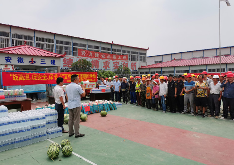 入夏以來,持續高溫,七公司寶灣三期項目的一線工人,戰高溫,斗酷暑,始終堅守在施工生產一線。為確保項目工人平安、清涼度過酷暑盛夏,7月11日,合肥寶灣國際物流中心有限公司工程物流黨支部、工程管理部聯同項目部開展“戰高溫、促安全、保節點”夏季送清涼慰問一線農民工活動。