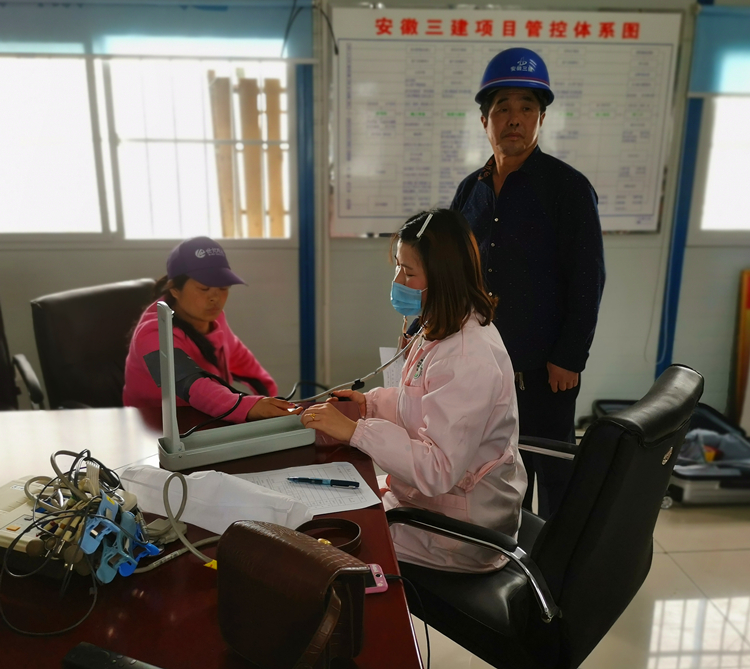 體檢項目包括常規身體檢查、測血壓及心電圖等。體檢現場,醫務人員為每位工人進行了全面的細致檢查,使項目一線工人進一步的了解了自身的身體狀況,經過一個下午的忙碌,此次活動得以圓滿完成。