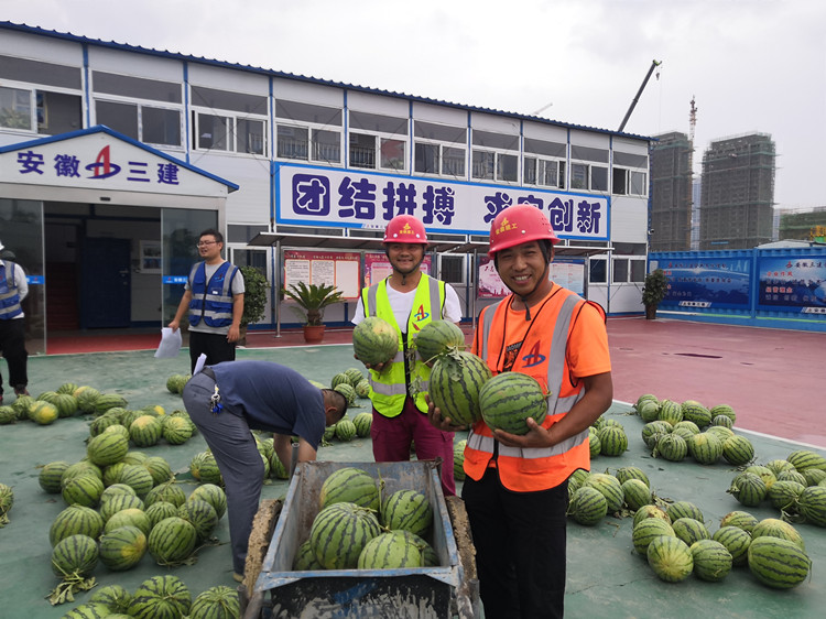 根據公司關于開展夏季防暑降溫工作和“送清涼”活動的安排,7月9日,五公司工會深入國貿大成花苑、和玥公館、力高·瀾湖前城項目,給正在一線作業施工的職工送去了綠豆、白糖、西瓜、藥品的防暑降溫物品,把清涼送到項目一線。