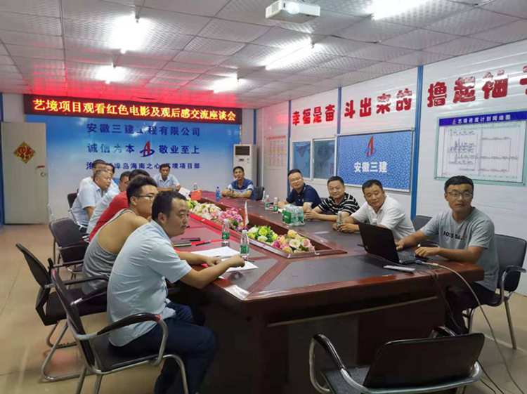 在公司深入開展“不忘初心、牢記使命”主題教育之際,一公司把學習教育向項目一線推進,2019年7月9日晚,在安徽三建海口新埠島海南之心-藝境項目利用晚間休息時間,在項目會議室組織集中觀看紅色電影《集結號》。項目經理李俠和全體黨員及干部一起通過觀影感受戰爭年代中共產黨員忠于職守,勇于擔當的偉大革命情懷。