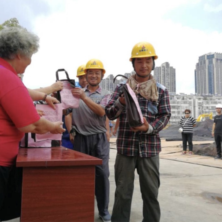 活動中,志愿者們提前為大家準(zhǔn)備了大量的礦泉水、西瓜、綠豆湯等降暑物品,并叮囑施工人員道:“天氣太過炎熱,大家一定要注意身體,防暑為首要”。志愿者向筆者說道“項目人員為我們建樓房蓋新家,高溫天氣建筑工人們尤為辛苦!我們希望可以在炎日夏季為他們帶來絲絲涼意”,表達我們的感謝。社區(qū)工作站還分別向大家發(fā)放“酷熱易暑,牽掛有你,珍愛自己,安全生產(chǎn)”關(guān)愛布袋,袋中有著風(fēng)油精、十滴水、毛巾等防暑降溫藥物及“三減三健,全民健身”宣傳畫冊。